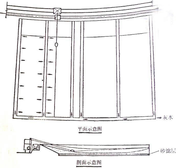 這種沉灰池的構(gòu)造與前述第一種靜態(tài)脫水池相仿,其計算公式可參照上節(jié)內(nèi)容。