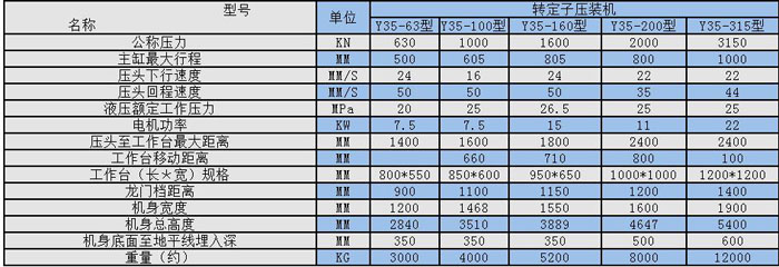 液壓壓裝機技術(shù)參數(shù):